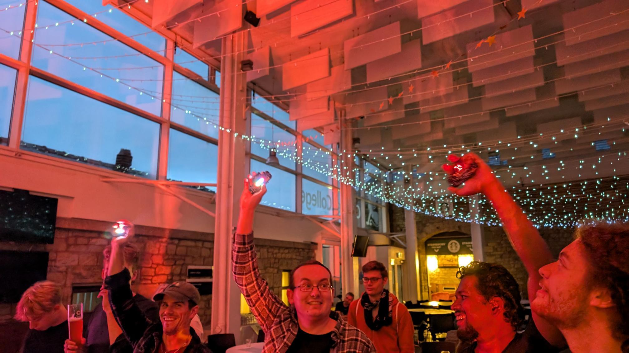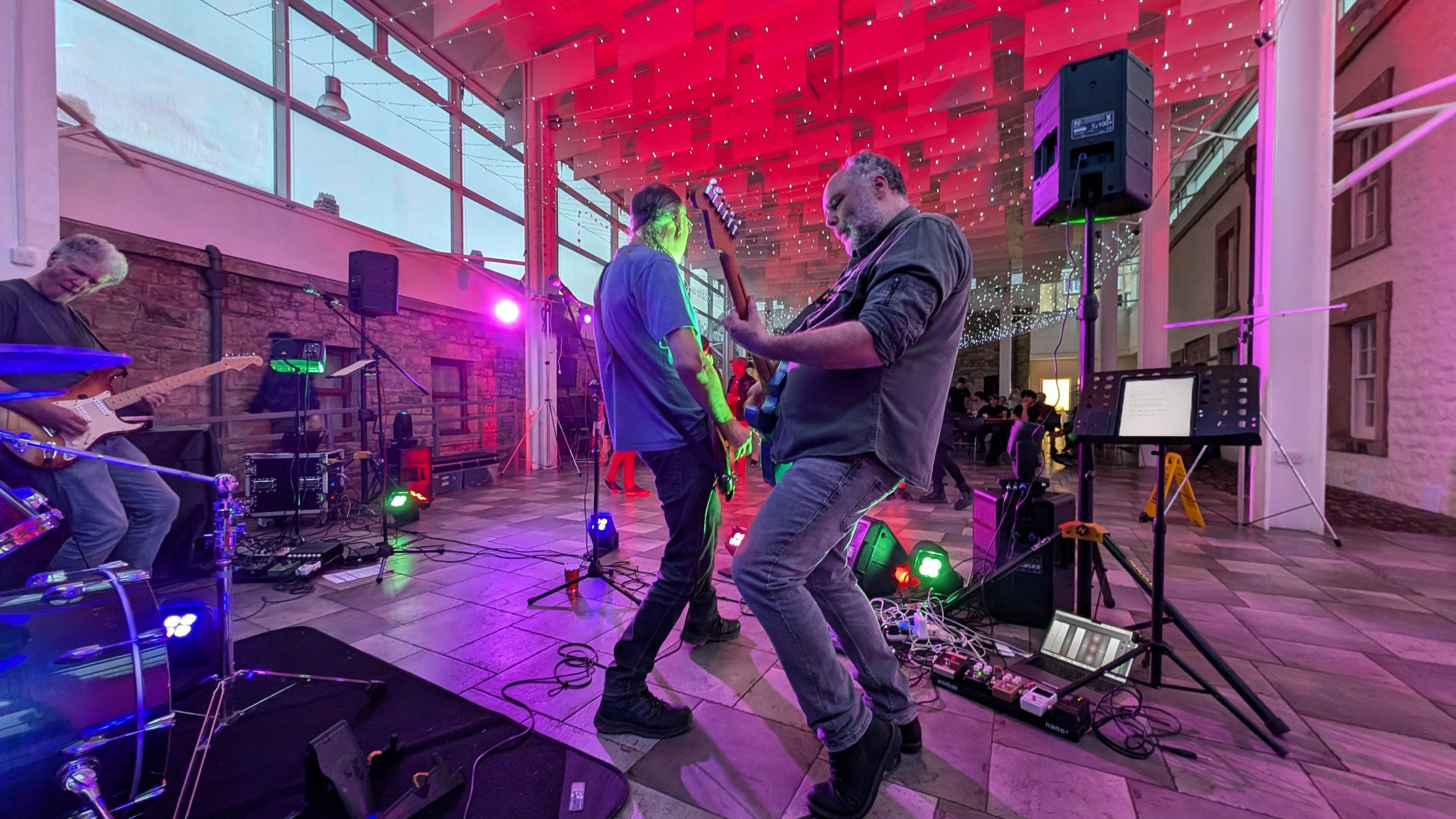 Practical tutorials were led by John Vidler, Kobi Hartley, Lorraine Underwood, Aron Eggens, and Davina Olasoju of Lancaster University. Among these were an opportunity for delegates to refine their surface mount assembly skills as they built their own ‘solder:bits’, a custom game controller developed by Lancaster’s Devices Lab using Micro:bit PCBs and Neopixel LEDs. Following this attendees participated in a coding session and added Jacdac components to their solder:bits for additional functionality. All of this culminated in a digital device that could remotely control concert lighting – just in time for a gig by Joe Finney’s band, The Usuals.